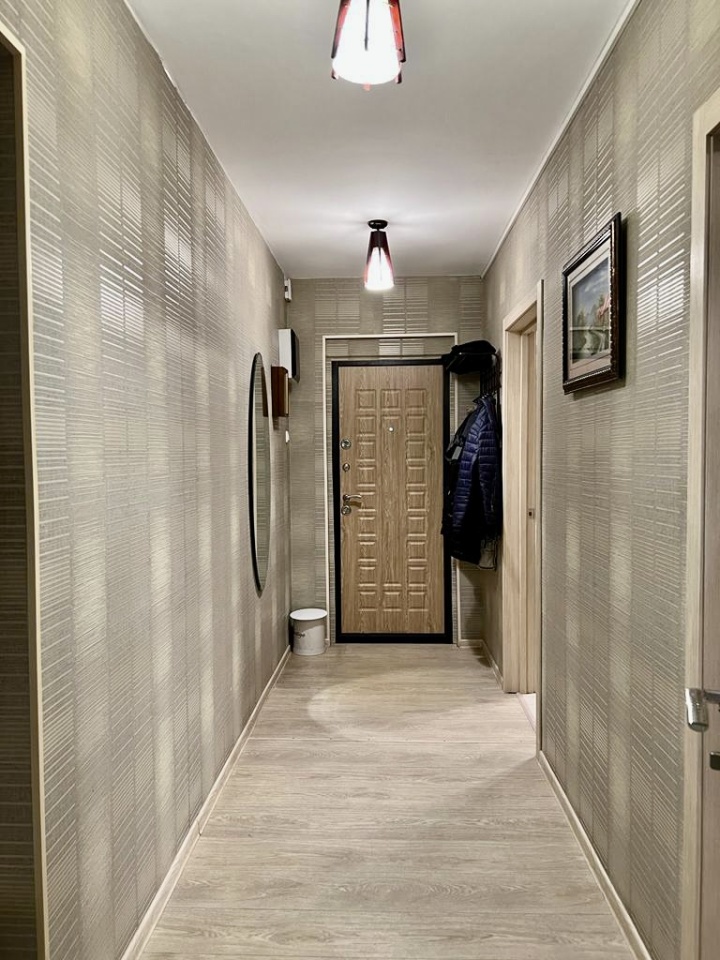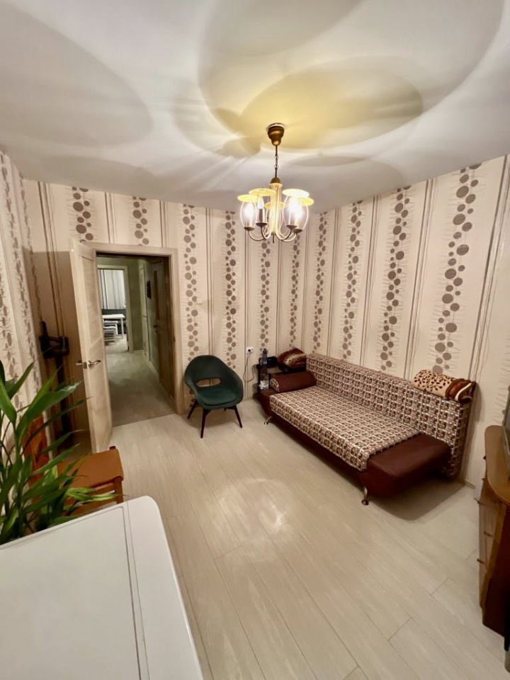 В квартире выполнен косметический ремонт, две просторные комнаты (на две стороны), отдельная кухня, санузел раздельный.