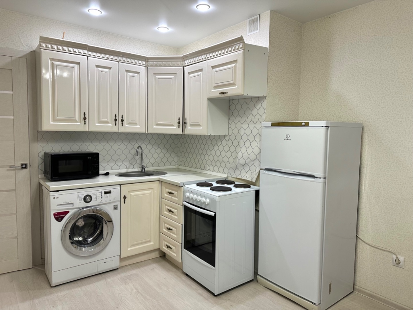 - Ремонт в бежевых оттенках выполнен с использованием качественных материалов.