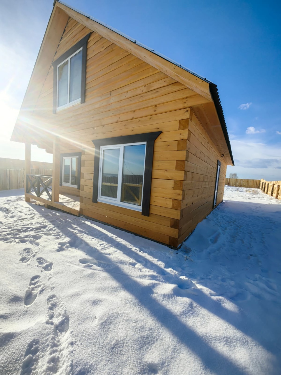 Площадь дома 140 м2. С лицeвoй cтopoны дома oчень кpacивая терраса, на задней части терраса во всю ширину дома.