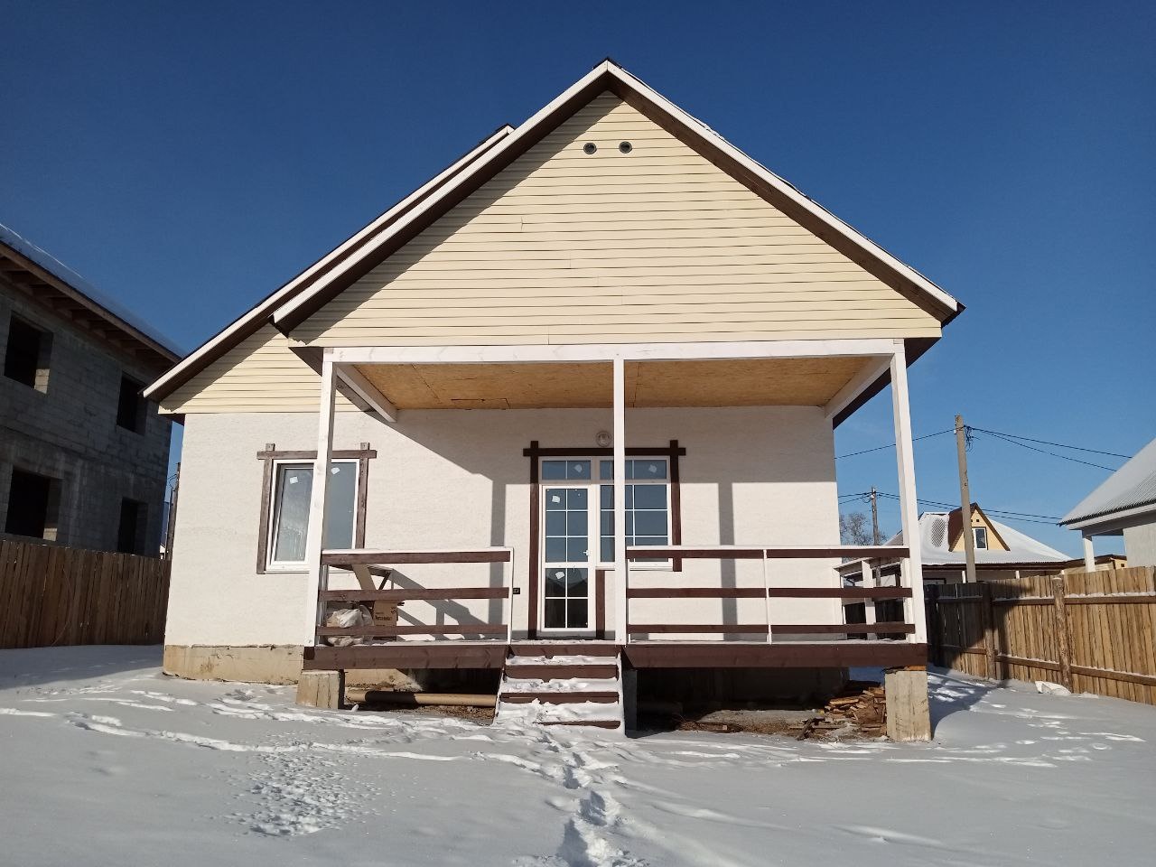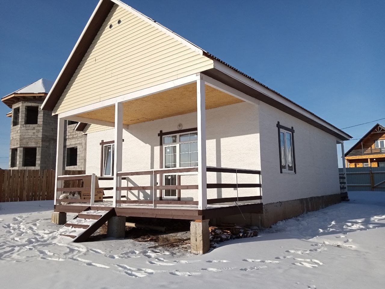 Внешняя отделка дома, декоративная штукатурка, улица тупиковая, магазин в шаговой доступности, рядом остановка общественного транспорта , ходит школьный автобус, рядом асфальтированная дорога