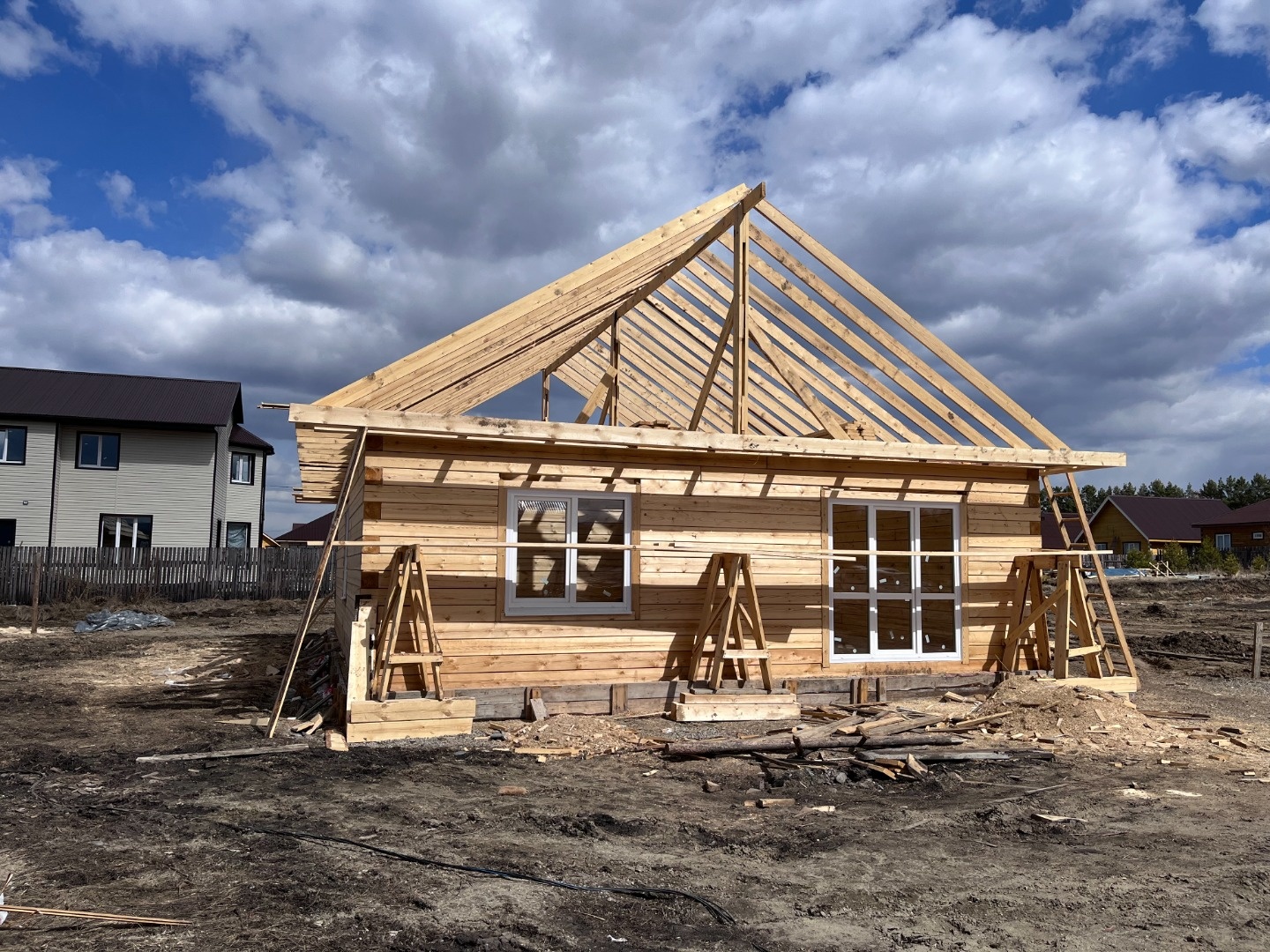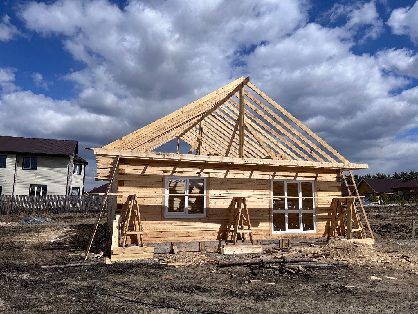 ♡ Раздельная планировка на 1-ом этаже: Кухня - гостиная и 3 спальных комнаты, с возможностью второго этажа)
