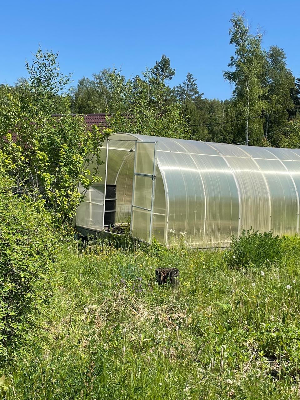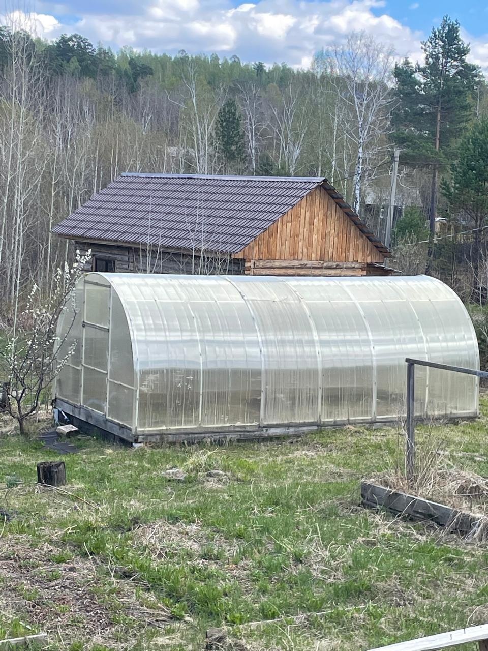 Баня из бруса 6*4 с верандой, теплица из поликарбоната 6*3 .
